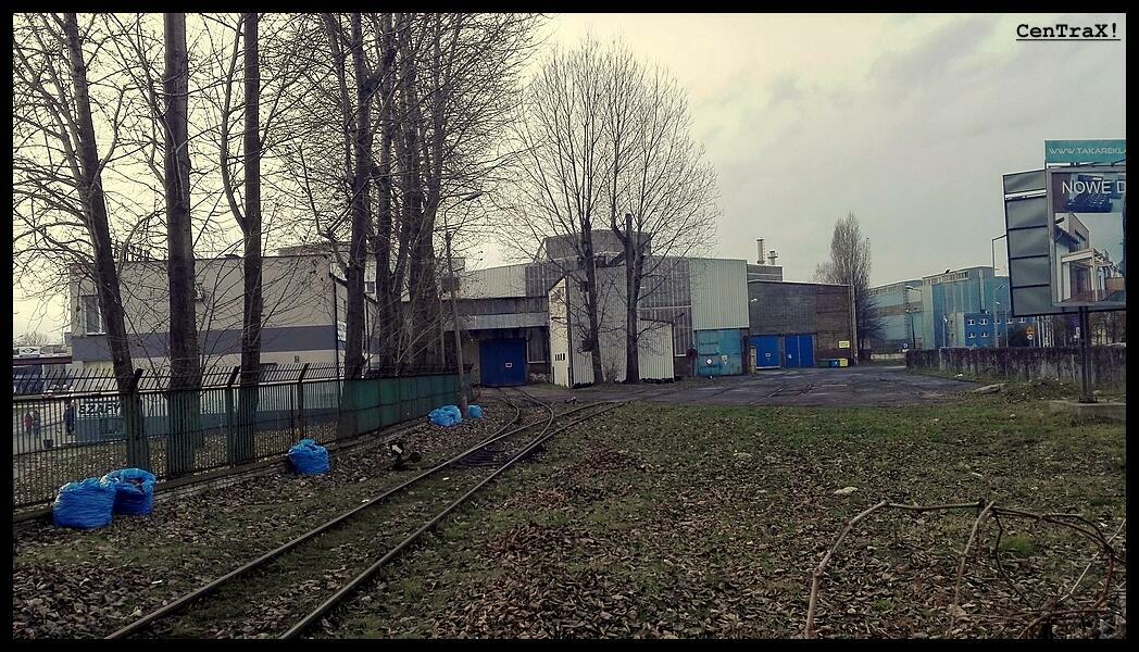 Tor wyciągowy kończący się na zachodniej części huty przed ul. Jana III Sobieskiego. Widok w stronę hal produkcyjnych.