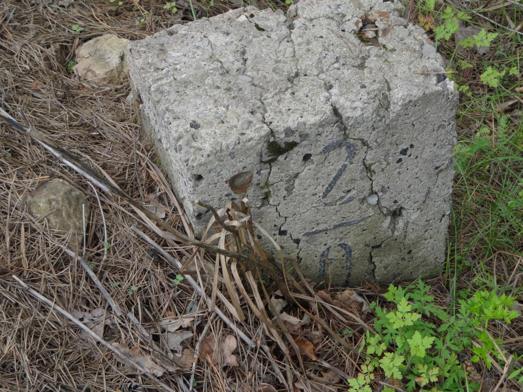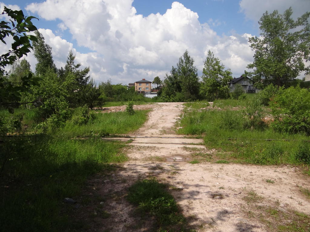 Fundament tarczy ostrzegawczej. Widoczny wiadukt kolejowy w Zajamiu. Widok w kierunku stacji Łączna. 2,1 km.