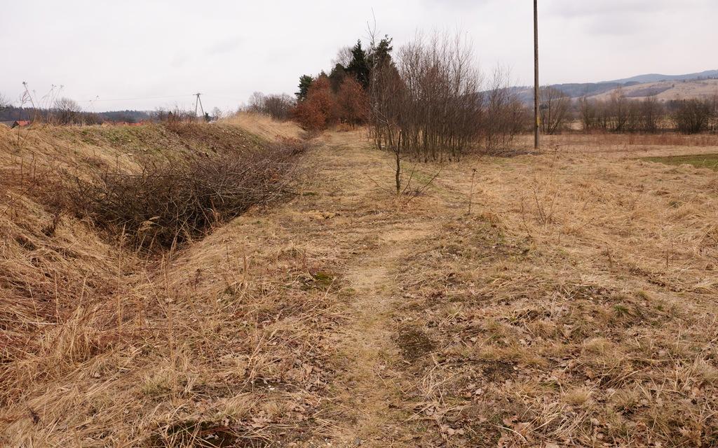 Bocznica do Młynowa, Ścinawica. Linia biegła przez podwórka domostw leżących przy wylocie na Młynów. Wiodła przez coraz to głębszy wykop w stronę Młynowa. Obecnie w związku z faktem, iż linia jest nieczynna - mieszkańcy zasypują starotorze czym tylko się da. Widok w kierunku Bierkowic.