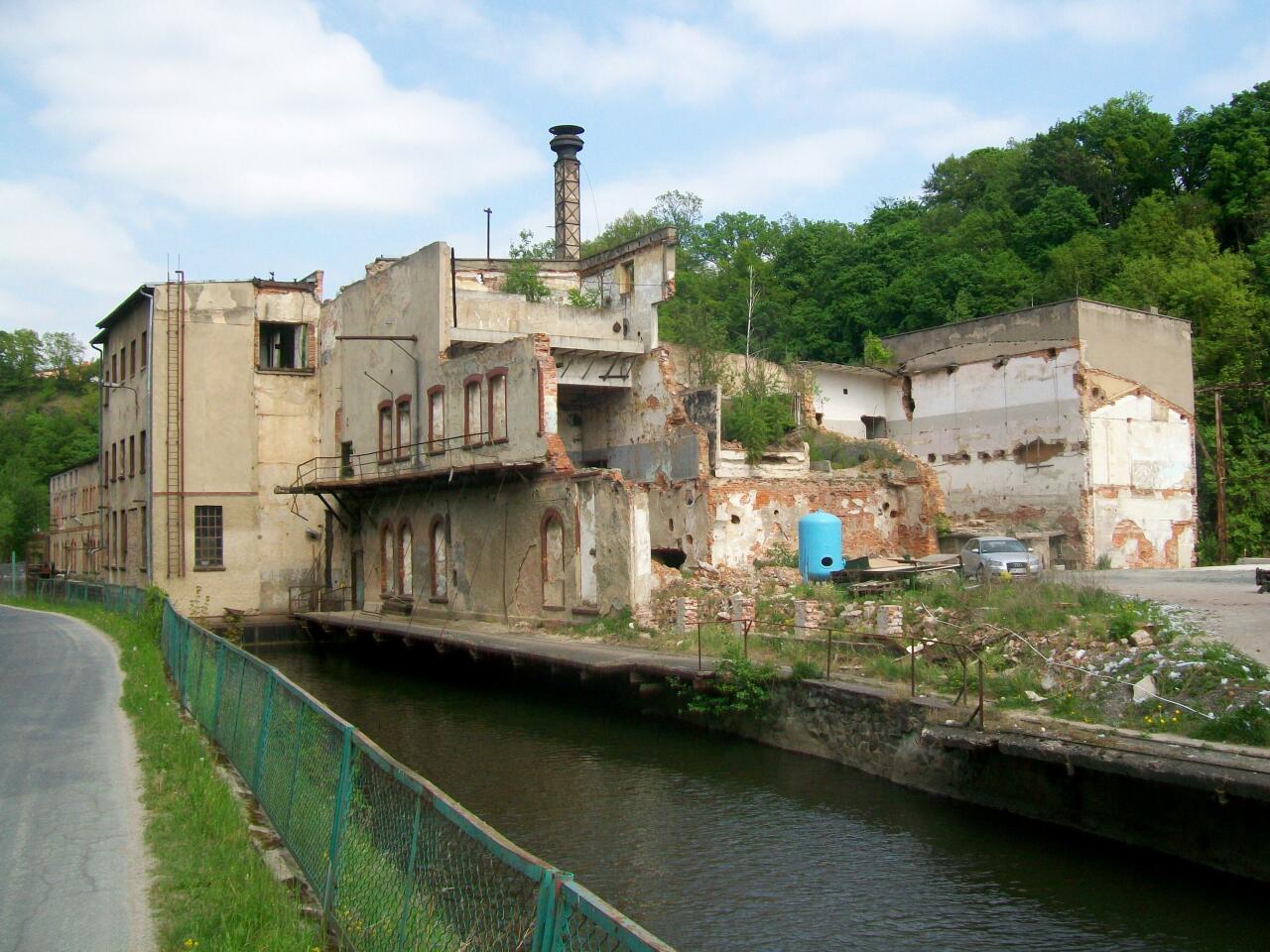 Zrujnowana zabudowa górnej części papierni w Młynowie, położonej bliżej Wojborza. Widok od strony kanału i rampy w kierunku południowo-zachodnim. Fajno, że ktoś tu próbuje coś robić i jest duża szansa, że przynajmniej częściowo uda się uratować zabudowania pofabryczne.