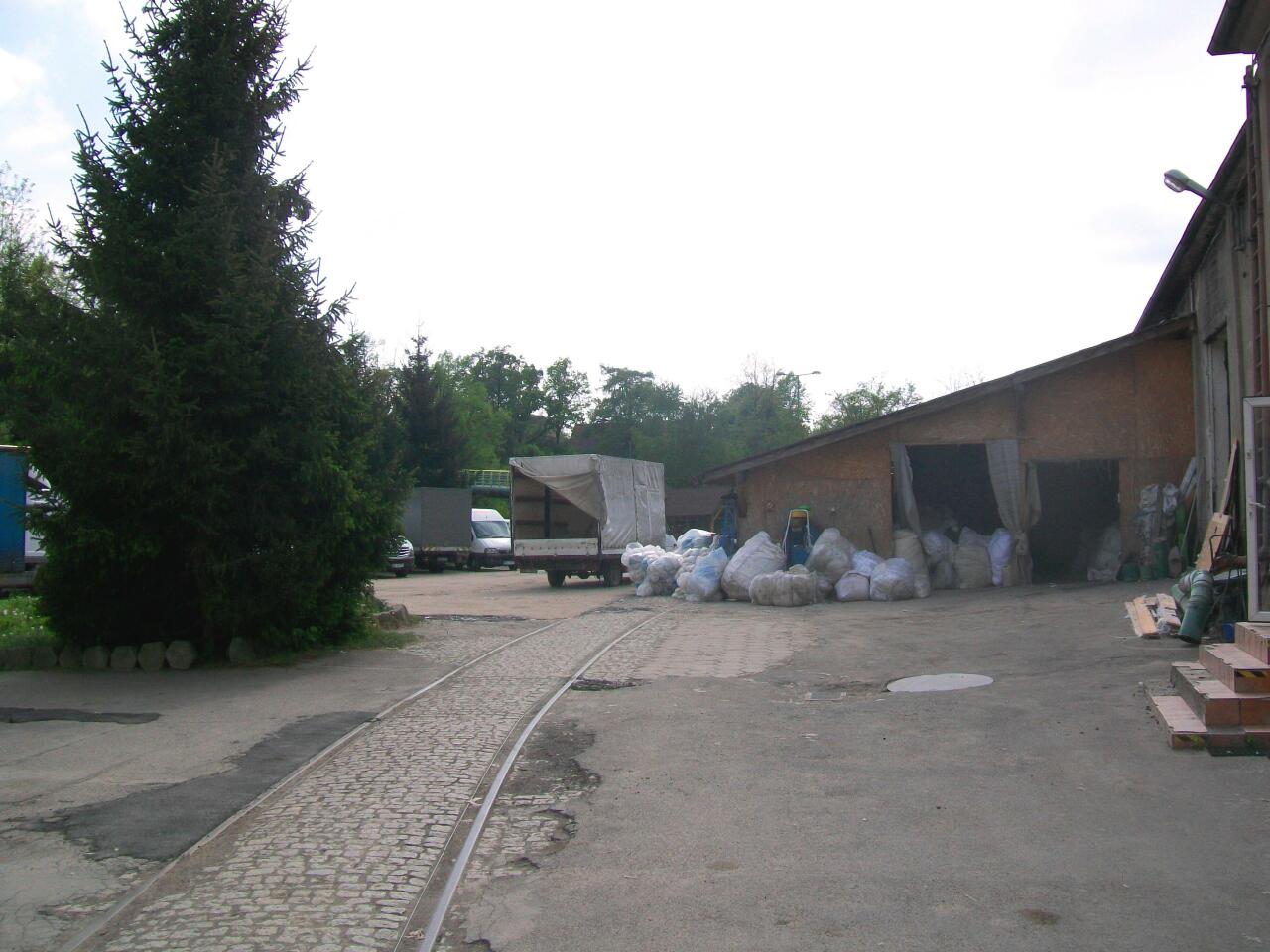Pozostałości torowiska na terenie górnego zakładu, położonego bliżej Wojborza. Ta część jest wykorzystywana przez firmę przerabiającą stare plastiki. Widok w kierunku południowo-zachodnim.