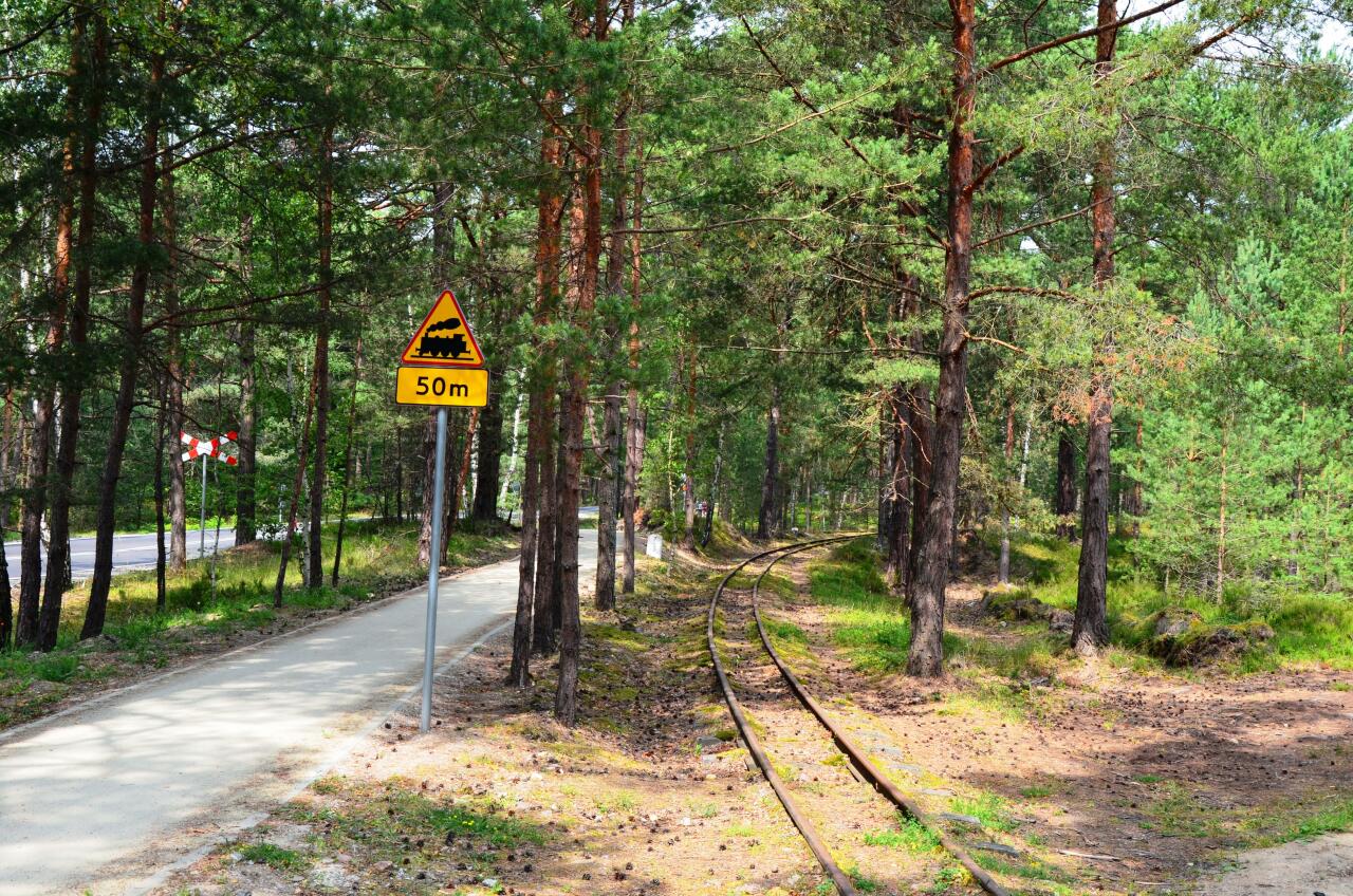 Widok w stronę magazynu amunicyjnym baterii Schleswig-Holstein w której znajduje się obecnie Muzeum Kolei Helskich.
