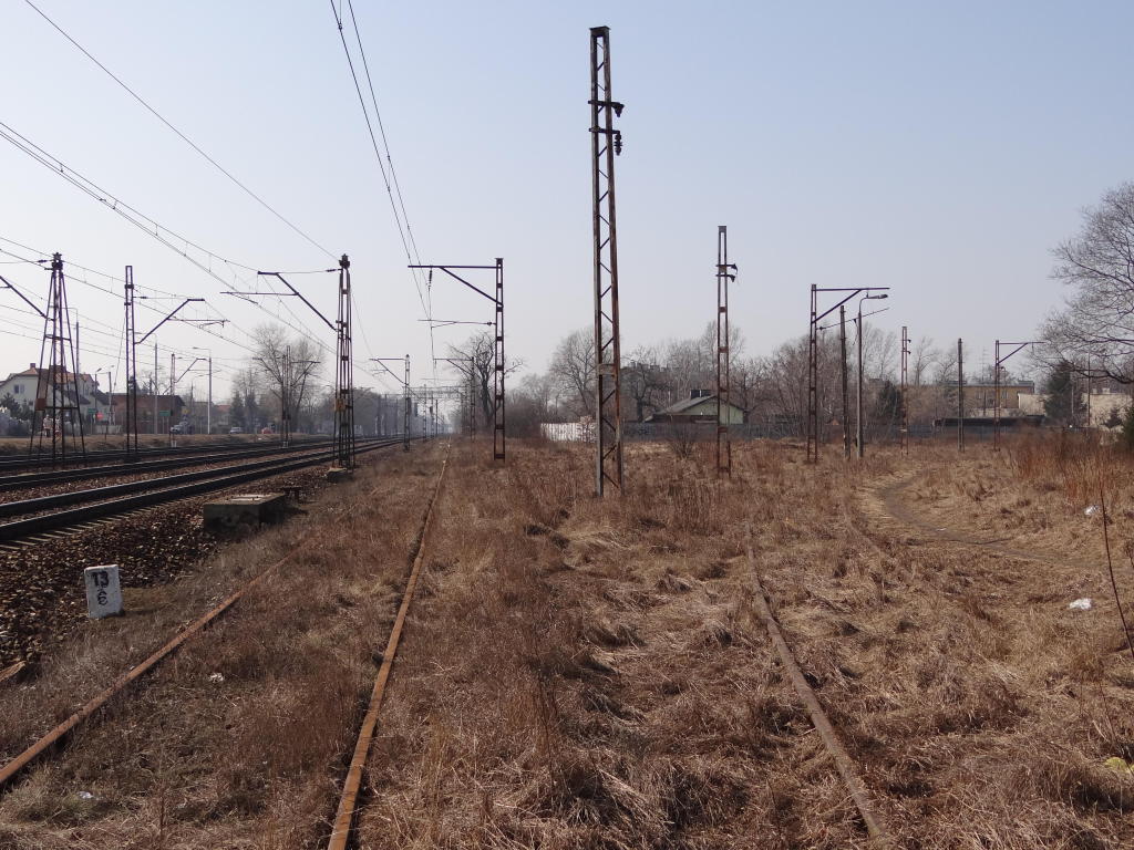 W prawo bocznica Zakładów Naprawczych Taboru Kolejowego. Widok w kierunku Grodziska Mazowieckiego. 13,6 km.