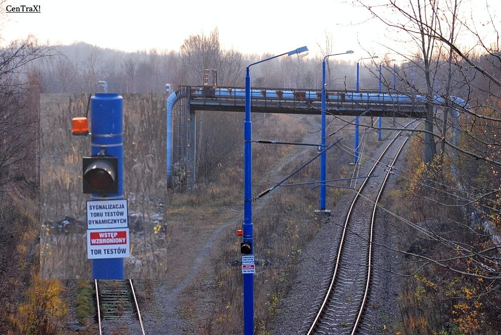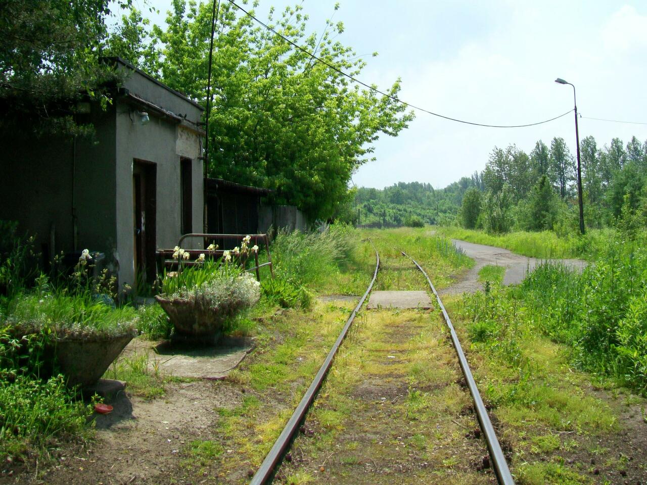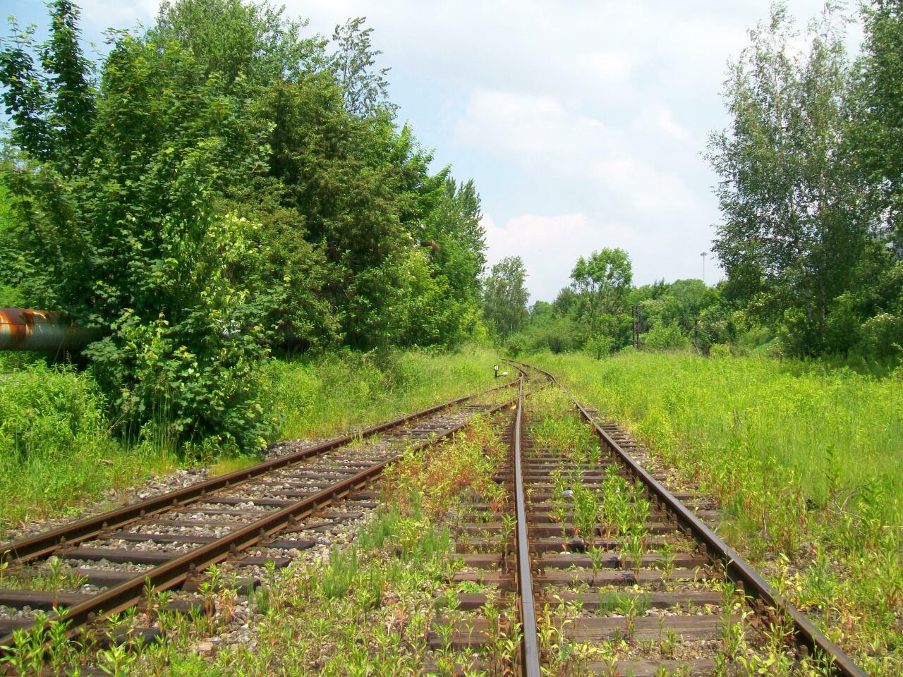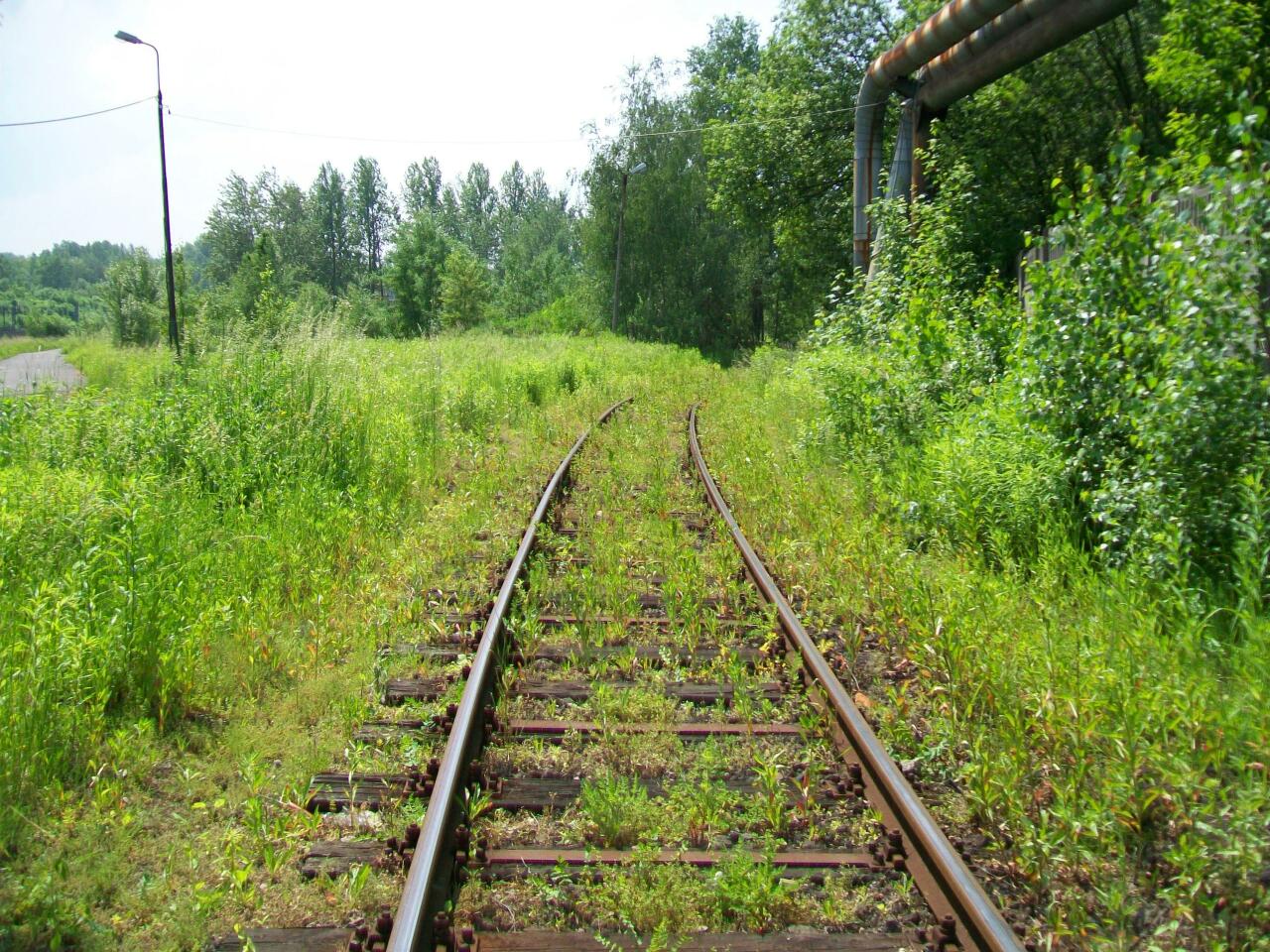 Po lewej bocznica Huty Królewskiej a po prawej tor testowy Alsthom Konstal.