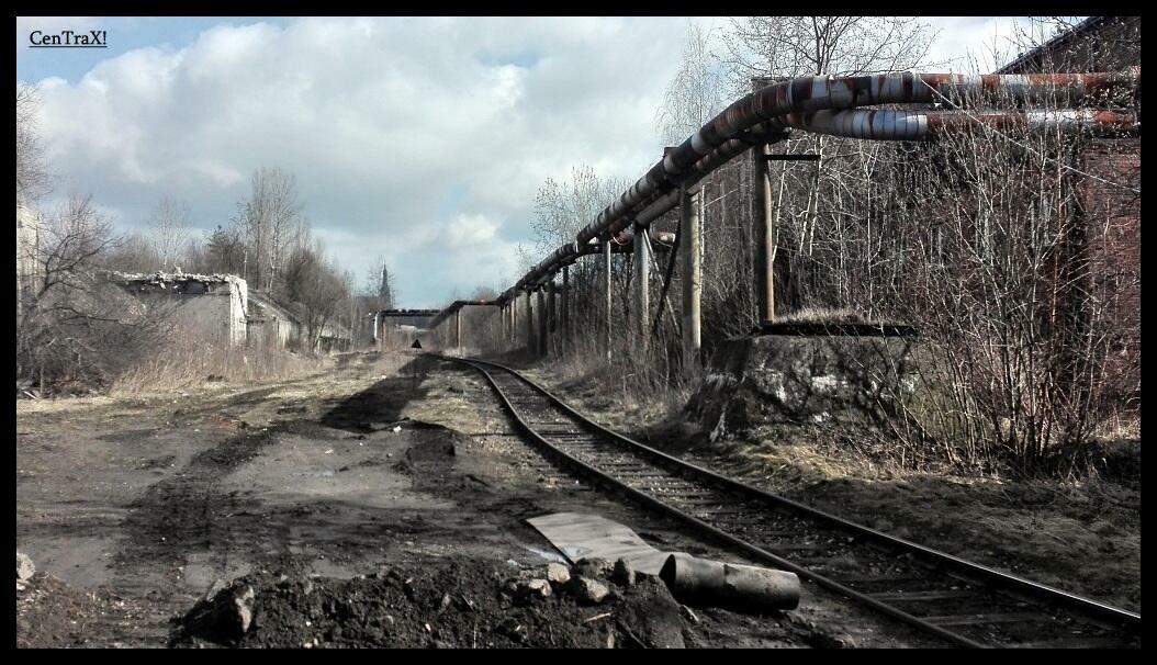 Prawy tor wjazdowy na teren Huty Królewskiej. Widok przez bramę wjazdową w kierunku południowo-zachodnim. Z lewej strony (poza kadrem) cieciówka na bramie wejściowej nr 8 na teren zakładu, którą można było się tu dostać od strony Krajcoka, kiedy jeszcze pracowało tu kilka tysięcy ludzi.