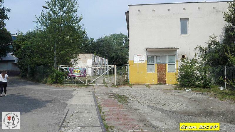 Brama kolejowa, przez którą poprowadzony jest tor do portu. Tor poprowadzony jest przez teren jednej z firm.