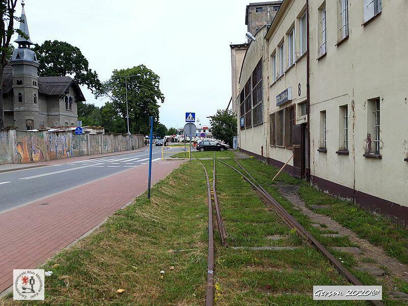 Bocznica prowadząca do portu na ul. Bohaterów Westerplatte. Widok w kierunku stacji Ustka.