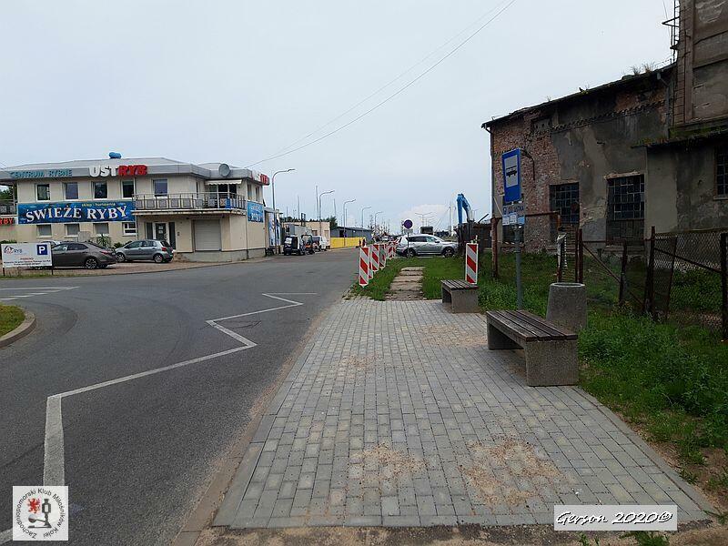 Przystanek autobusowy zbudowany na torze prowadzącym na nabrzeże. Obecnie nic już nie wjedzie do portu.