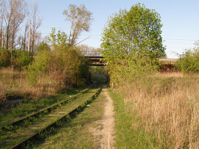 Wiadukt nad bocznicą Warszawa Główna Towarowa - Zakłady Mechaniczne Ursus. W lewo Warszawa Gołąbki, w prawo Warszawa Ursus Północny. 9,5 km.