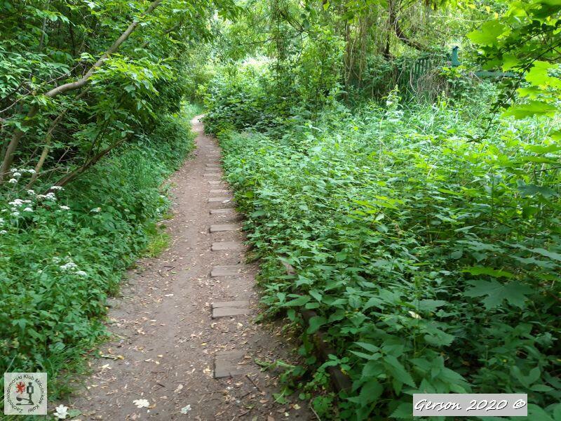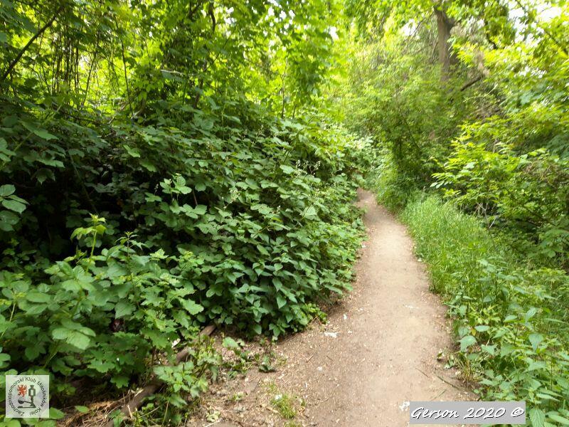 Ścieżka wydeptana przez mieszkańców pobliskiego osiedla. Zarośnięty tor znajduje po lewej stronie. Widok w kierunku ul. Kordeckiego i dalej stacji Szczecin Turzyn.