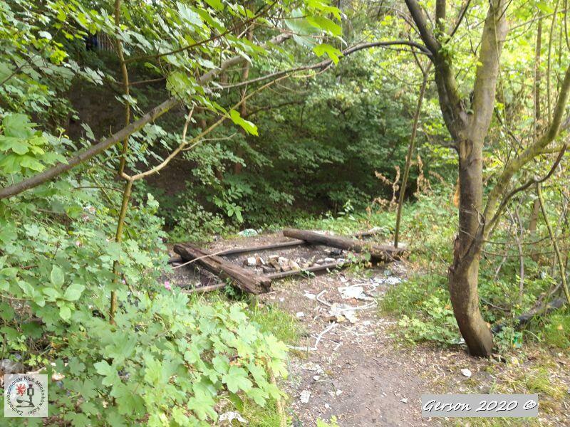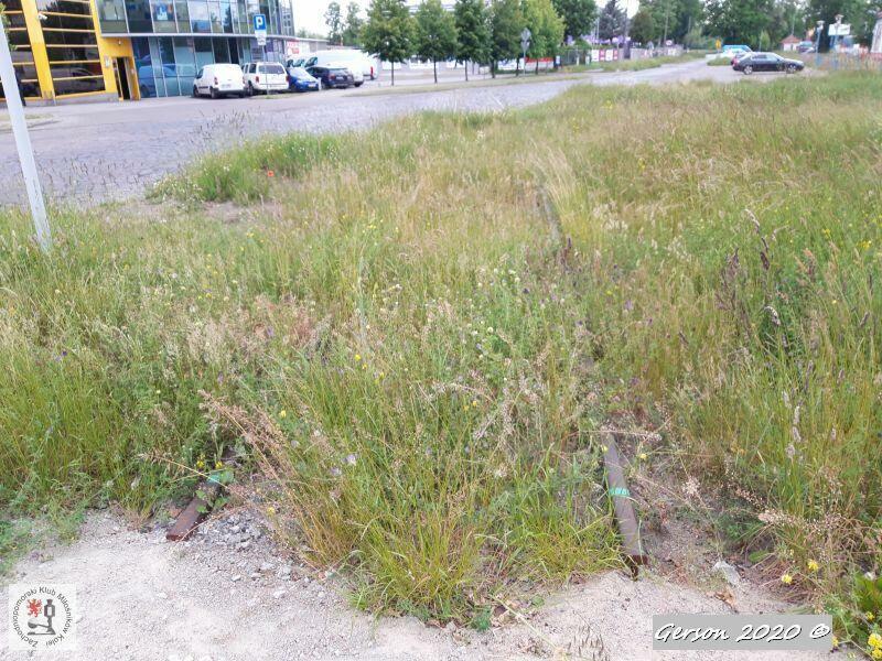 Zachowane podkłady dawnego toru nr 4b prowadzącego kiedyś do zespołu bocznic. Widok w kierunku tych bocznic - bocznicy nr 2 Centrali Handlowej Materiałów Budowlanych, bocznicy przy ul. Santockiej 40, bocznicy składu opału, bocznicy przy ul. Zielonogórskiej, bocznicy przy ul. Santockiej 41 i bocznicy przy Santockiej 39.