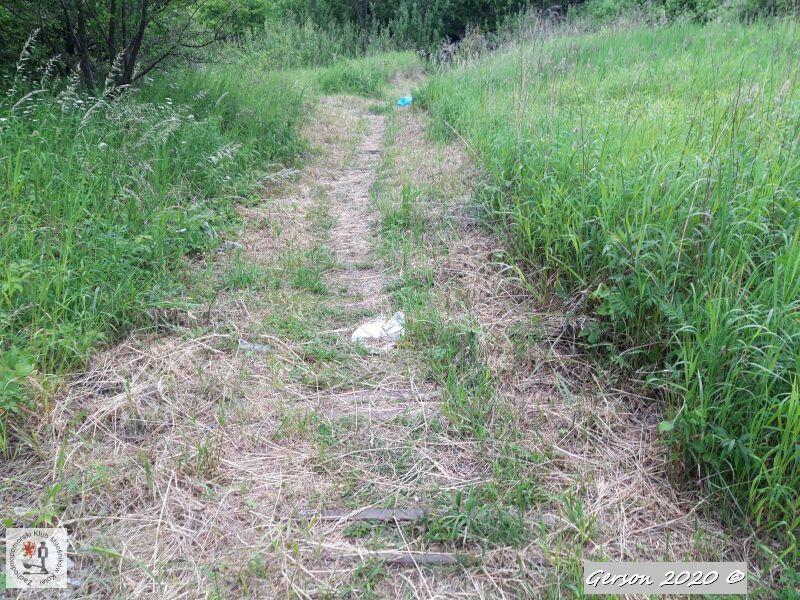 Ścieżka wydeptana przez mieszkańców pobliskiego osiedla wzdłuż toru prowadzącego obecnie do jednostki wojskowej. Widok w kierunku ul. Santockiej i dalej w kierunku w/w jednostki wojskowej.