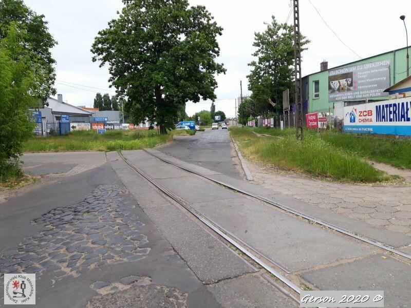Zlikwidowana jednotorowa bocznica znajdująca się z tyłu magazynu należącego obecnie do hurtowni budowlanej Hiper-Glazur.