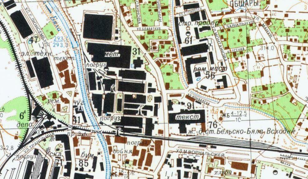 Stacja BB Wschód oraz bocznica Teksid i Weldoro oraz lokomotywownia wraz z linią BB Wschód - BB Zachód.