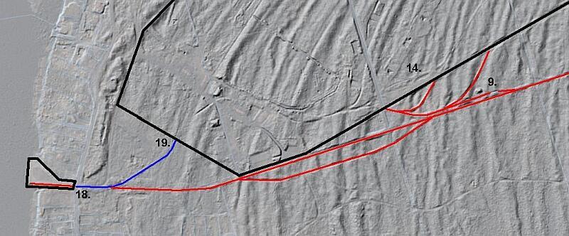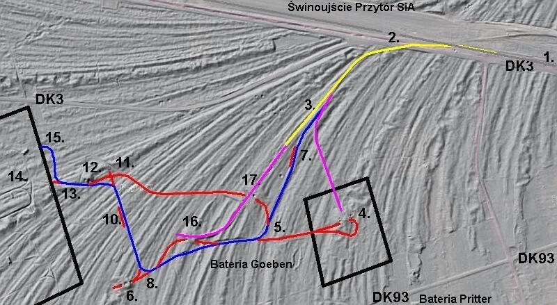 różowy - starotorze bocznicy normalnotorowej baterii Goeben;