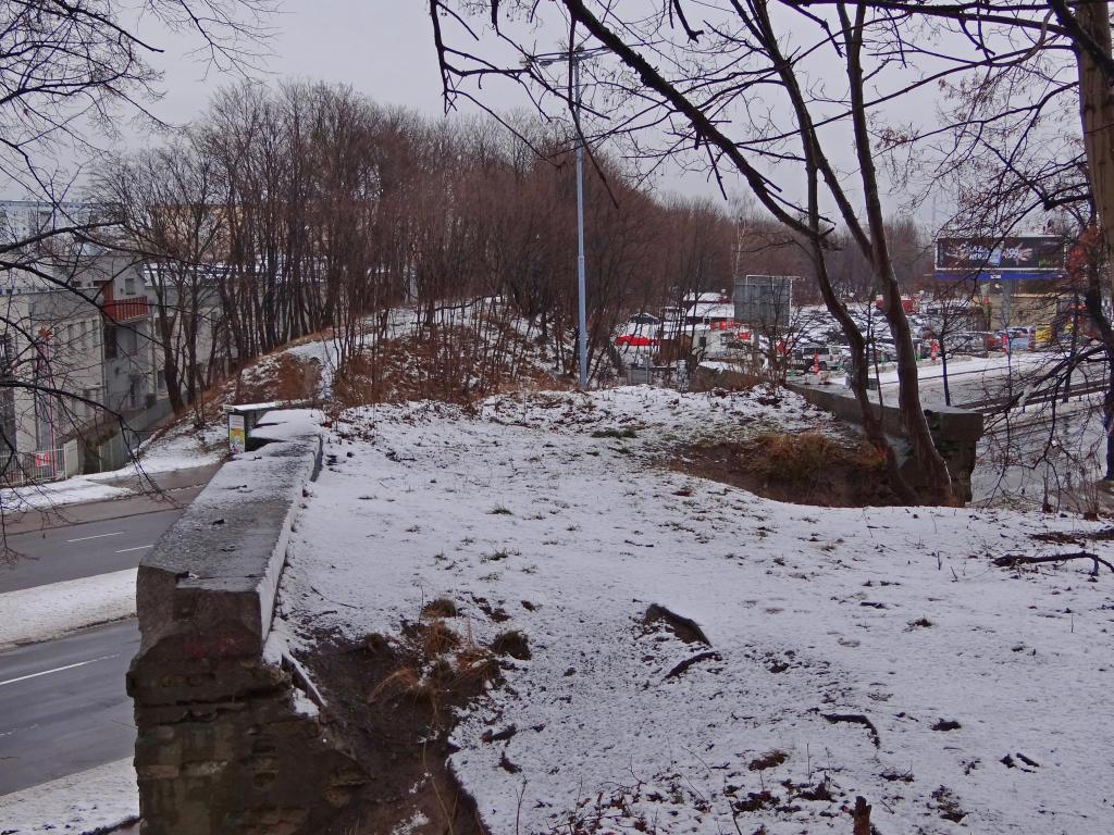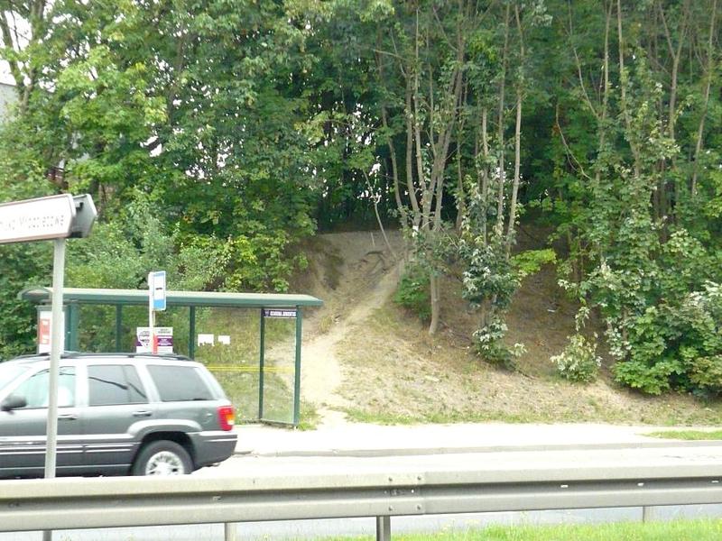 Rozebrany wiadukt nad ulicą Grunwaldzką. Zachowany przyczółek. Widok w kierunku Kartuz. 1,9 km.