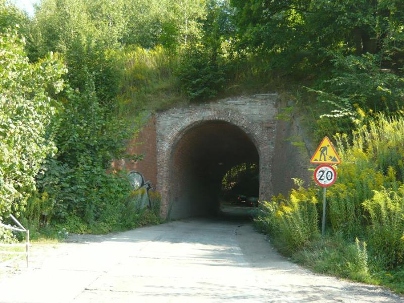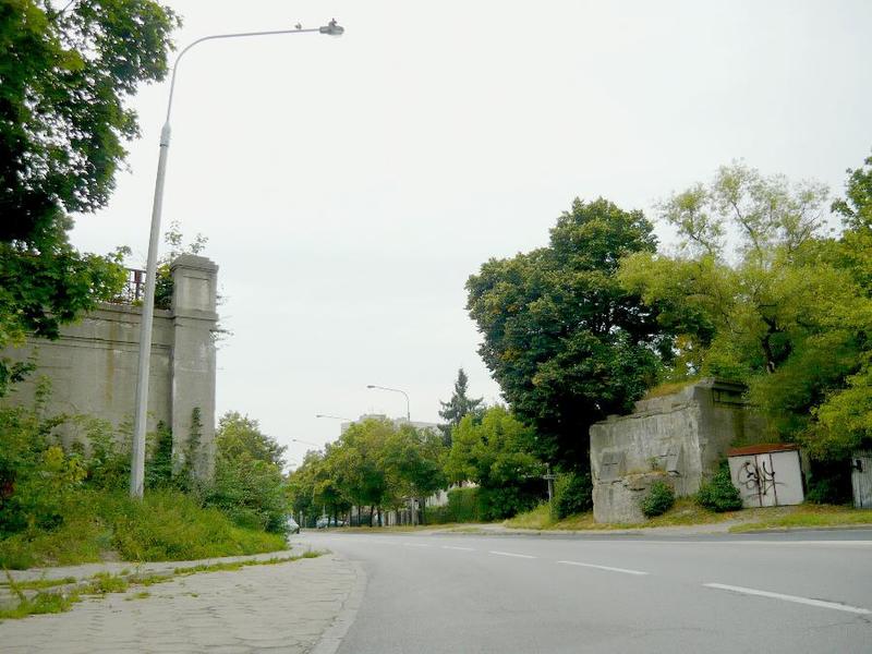 Dziesiąty wiadukt kolejowy zburzony w 1945r. usytuowany jest nad ulica o dawnej nazwie Dolne Migowo. Zdjęcie to na dzień 28.08.2009r pokazuje zabezpieczenie pozostałości specjalna siatką przed postępującą degradacją.
