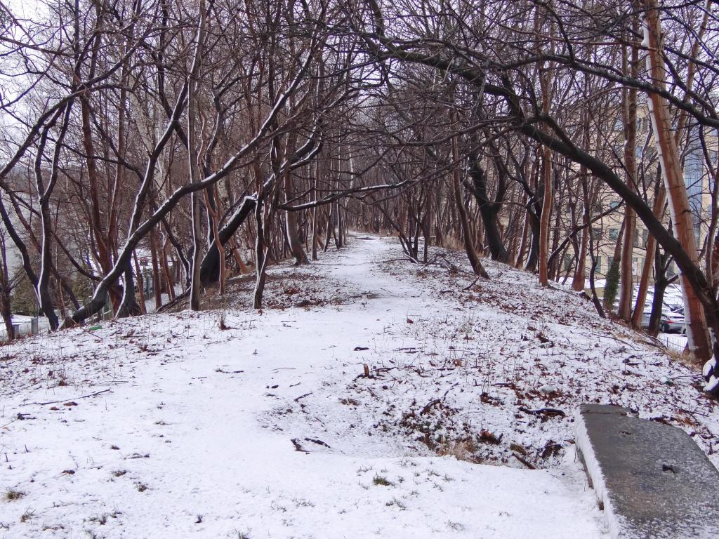 Rozebrany wiadukt nad ulicą Grunwaldzką. Rozebrany nasyp. Widok w kierunku początku linii, Gdańska Wrzeszcza. 1,9 km.