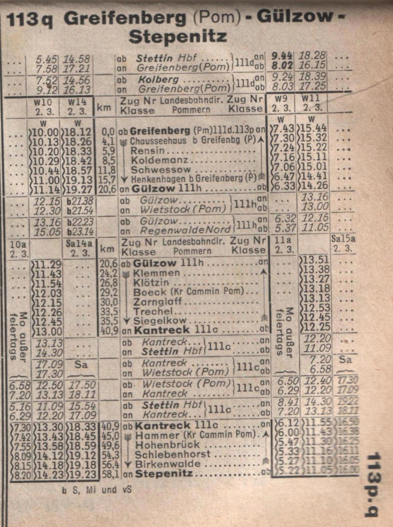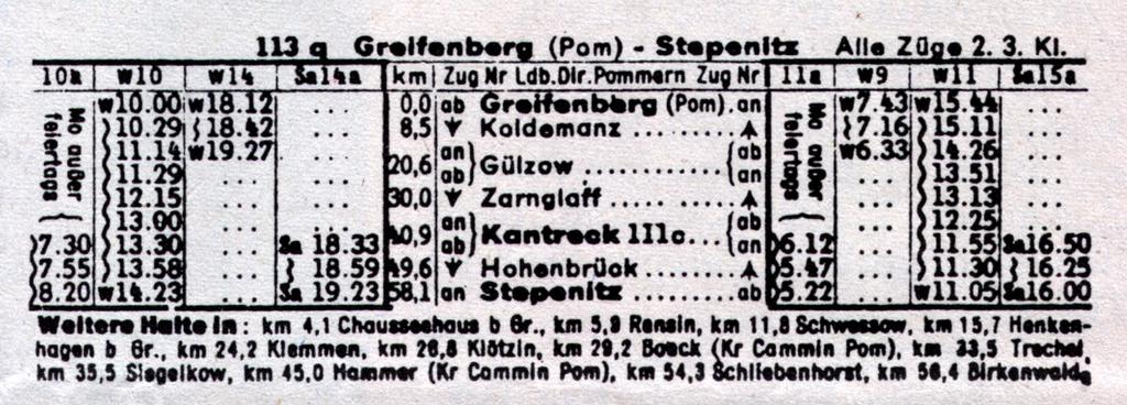 113q Greifenberg (Pom) - Stepnitz. Skan strony z Amtlicher Taschenfahrplan Stettin 1937/38.