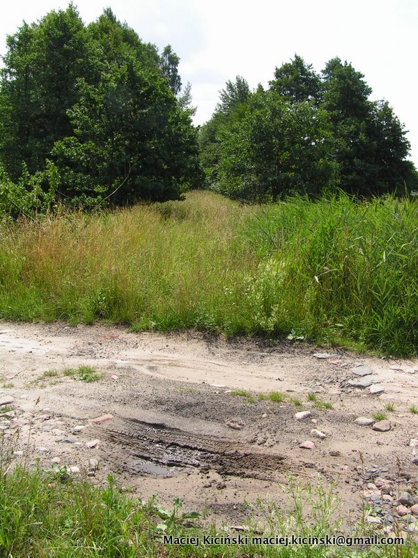 Miejsce po przejeździe kolejowym na drodze lokalnej Kołomąć-Rzęsin.
