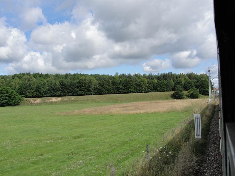 Widok w stronę Rokity, w tle nasyp i wiadukt wąskotorówki z Łożnicy do Golczewa.