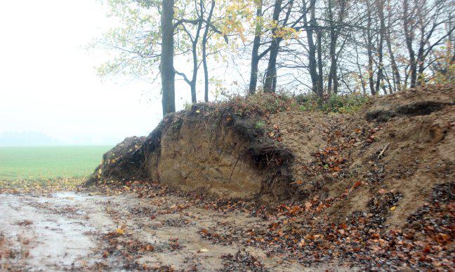 Przekrój przez nasyp kolei wąskotorowej (na lewo Śniatowo, na prawo Golczewo Wąsk./Samlino);