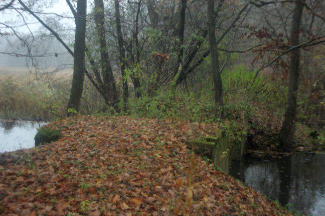 Odc. Gadom - Samlino Odg. ok. 250 m przed odgałęzieniem, woda przepływająca strumieniem przez przyczółki mostu trafia do takiego zbiornika, żółty szlak PTTK w tym miejscu nie do przejścia z powodu braku mostu, podniesionego stanu wody i bagien dookoła;