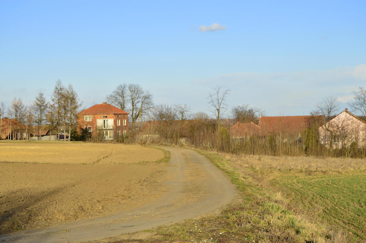 Przeglądając sieć natrafiłem na taką mapę https://mapy.geoport…. Mapa topograficzna ukazująca ukształtowanie terenu. Ślad, który jest najbliżej przebiegającej niegdyś linii, to droga leśna (można to sprawdzić wybierając się na przejażdżkę rowerem wybudowaną tam ścieżką rowerową, śladami dawnej linii wąskotorowej Charsznica - Miechów).