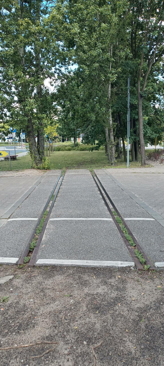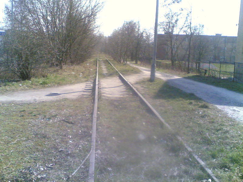 Fragment toru w kierunku Czarnowa, szyny kończą się przed/na terenie Hali Balonowej ~500 m dalej.