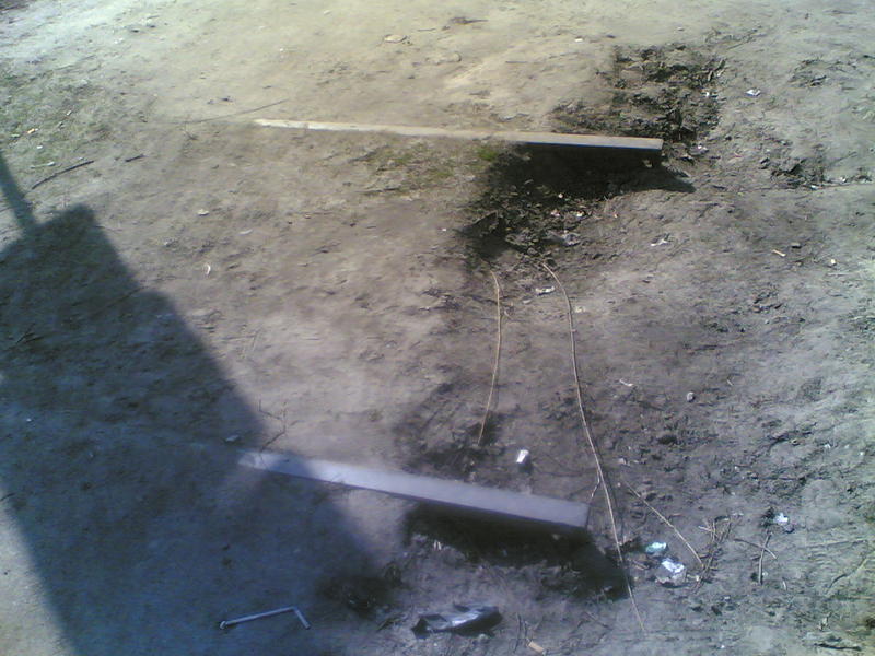 Rozmontowane szyny i fragment toru. Widok w kierunku Torunia Północnego. Jaki jest los tych szyn? Prawdopodobnie skup złomu po prawej stronie.