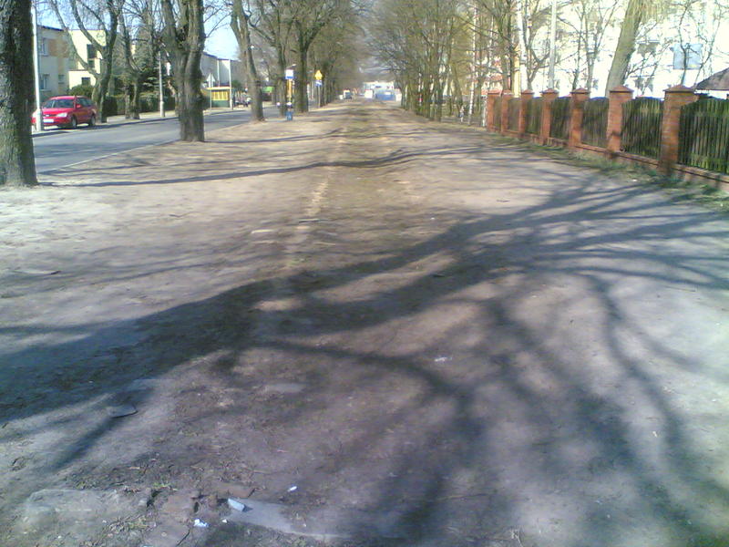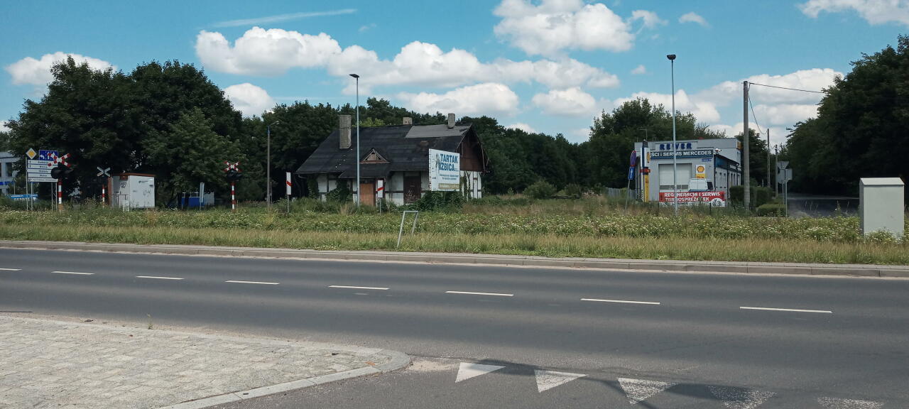Rp1!:) Wjeżdżamy na przejazd na ul. Grunwaldzkiej. Przejazd zachowany w dobrym stanie, zdjęto jednak w ostatnim czasie stojący przy jezdni znak ostrzegający o możliwości przejazdu pociągu.