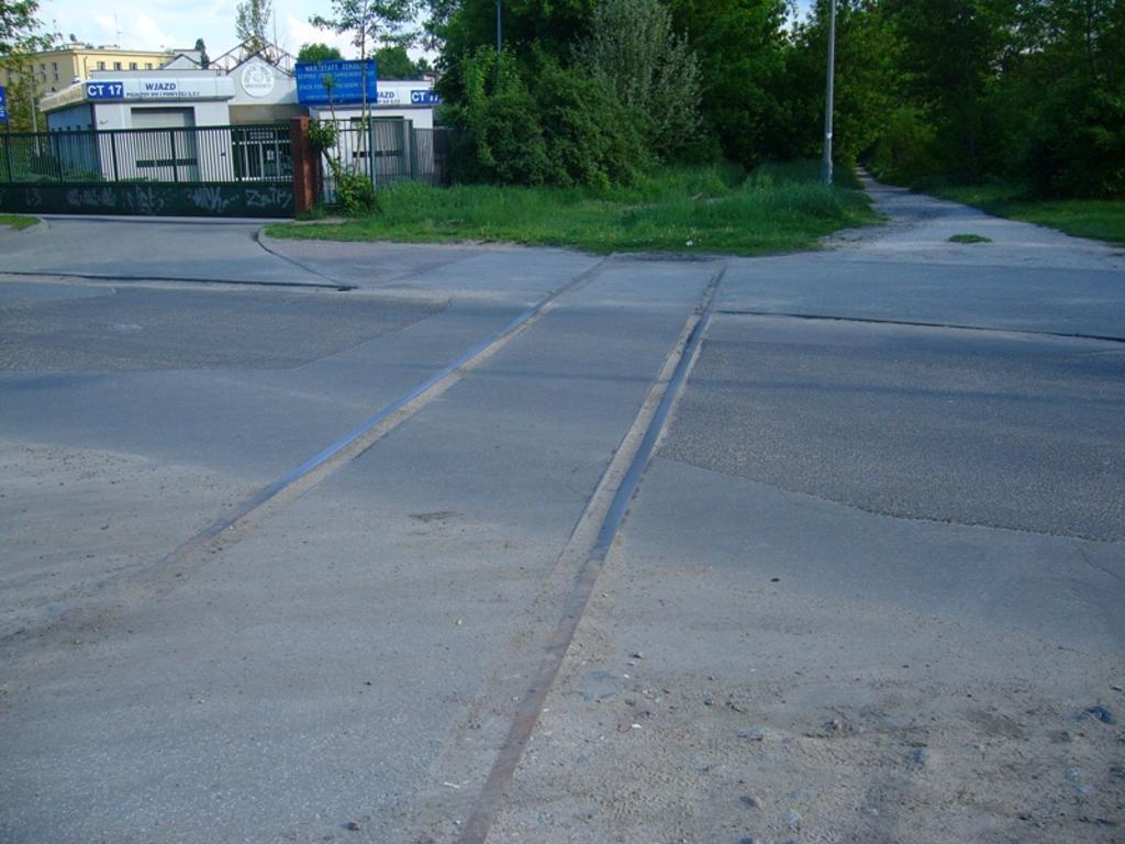 W tym miejscu był przejazd kolejowy. Widok na wjazd do stacji Toruń Północny od strony Torunia Zachodniego/ Czarnowa. W tle kozioł oporowy.