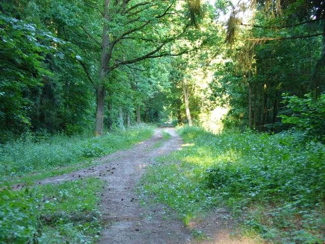 Kilometr za nieistniejącą już stacją Liebenthal starotorzem wiedzie droga (ścieżka rowerowa), widok w kierunku Kisielic.