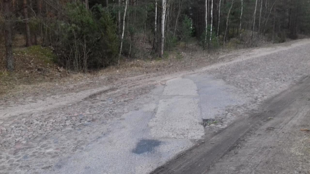 Km 7,8 rozmyty nasyp, linia nieprzejezdna. Prawdopodobnie bobry utworzyły rozlewisko, które stopniowo rozmywa nasyp. Według stanu na lipiec 2021, szyny wiszące w powietrzu, a podkłady rozsypane poniżej.
