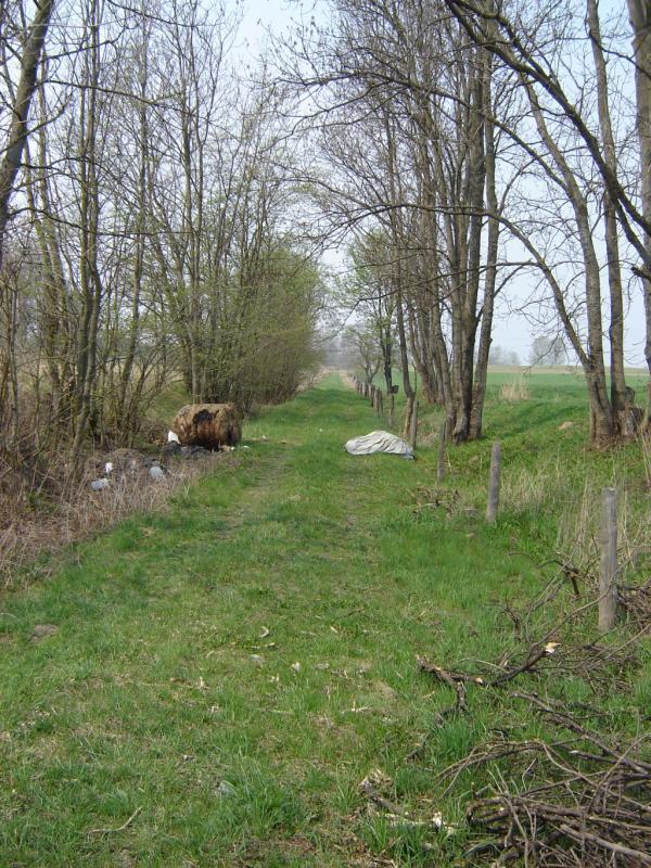 Przed miejscowością Kolonia Rybacka szlak linii jest zagrodzony drutem, jest także info o zakazie wstępu na teren wojskowy.