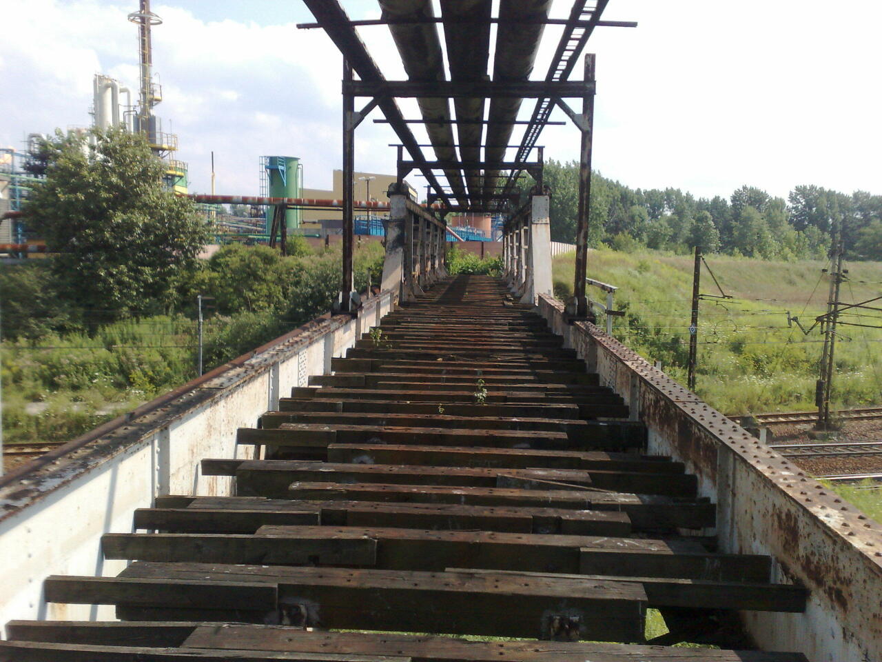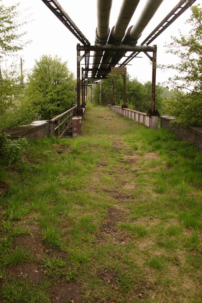Przed wiaduktem. Tuż przed wiaduktem nad starą autostradą dołączają się jakieś rury łączące dawną kopalnię Pstrowski z koksownią Jadwiga.