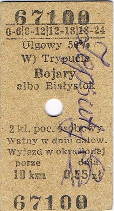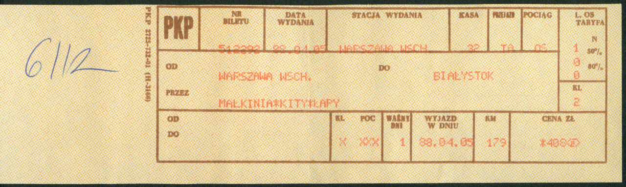 W tym bilecie najzabawniejsze są stacje pośrednie: Małkinia Kity Łapy. Zabrakło Szulborza-Kotów, jak wówczas nazywała się stacja Szulborze Wielkie:).