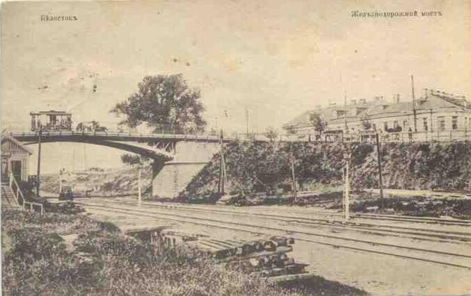 Dawna pocztówka z Białegostoku opisana jako "most kolejowy".