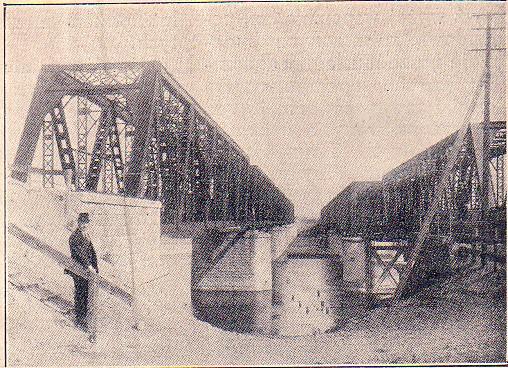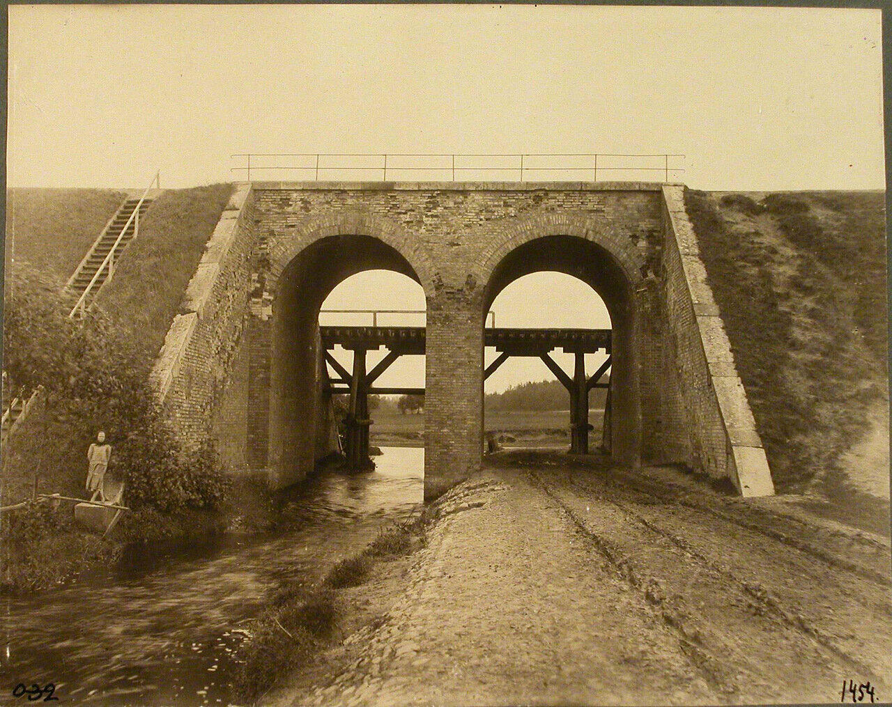 Most kolejowy w wiorście 888 - mimo, że dość nowy, to już wówczas, w końcu XIX w. widać zły stan techniczny obiektu.