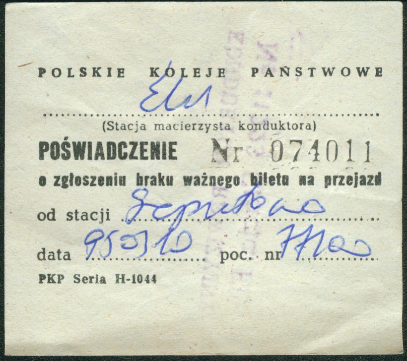 Pamiątka po przejeździe bez biletu z nie (do końca) mojej winy.
