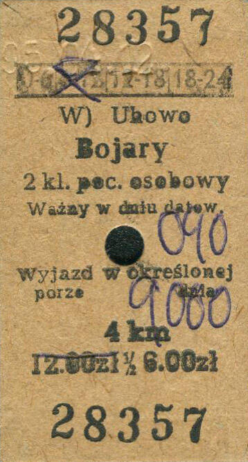 Bilet kolejowy Uhowo - Warszawa Wsch.