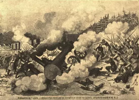 Napad powstańców na pociąg wojskowy pod Czyżewem (wg ilustracji francuskiej).