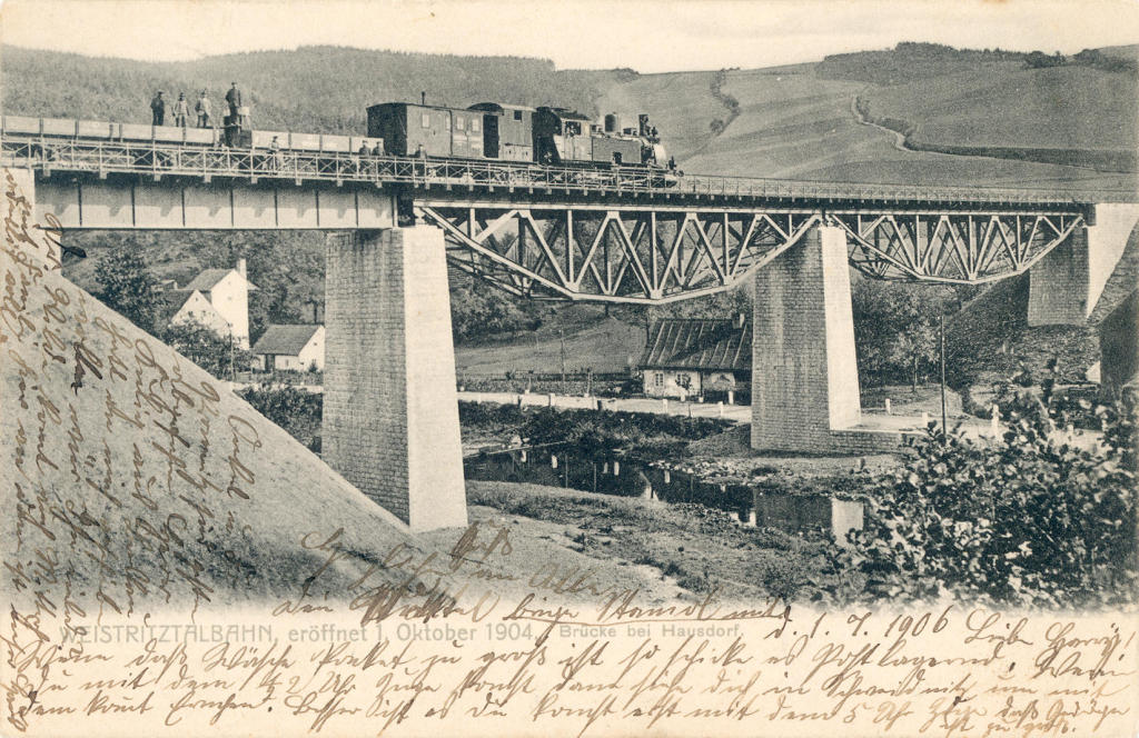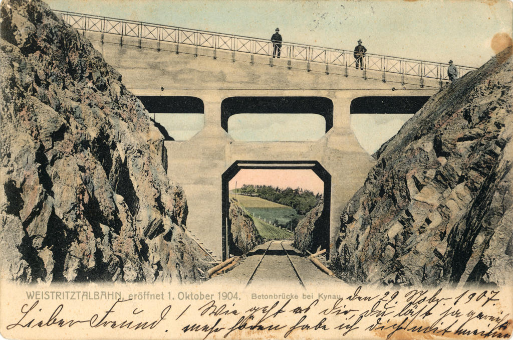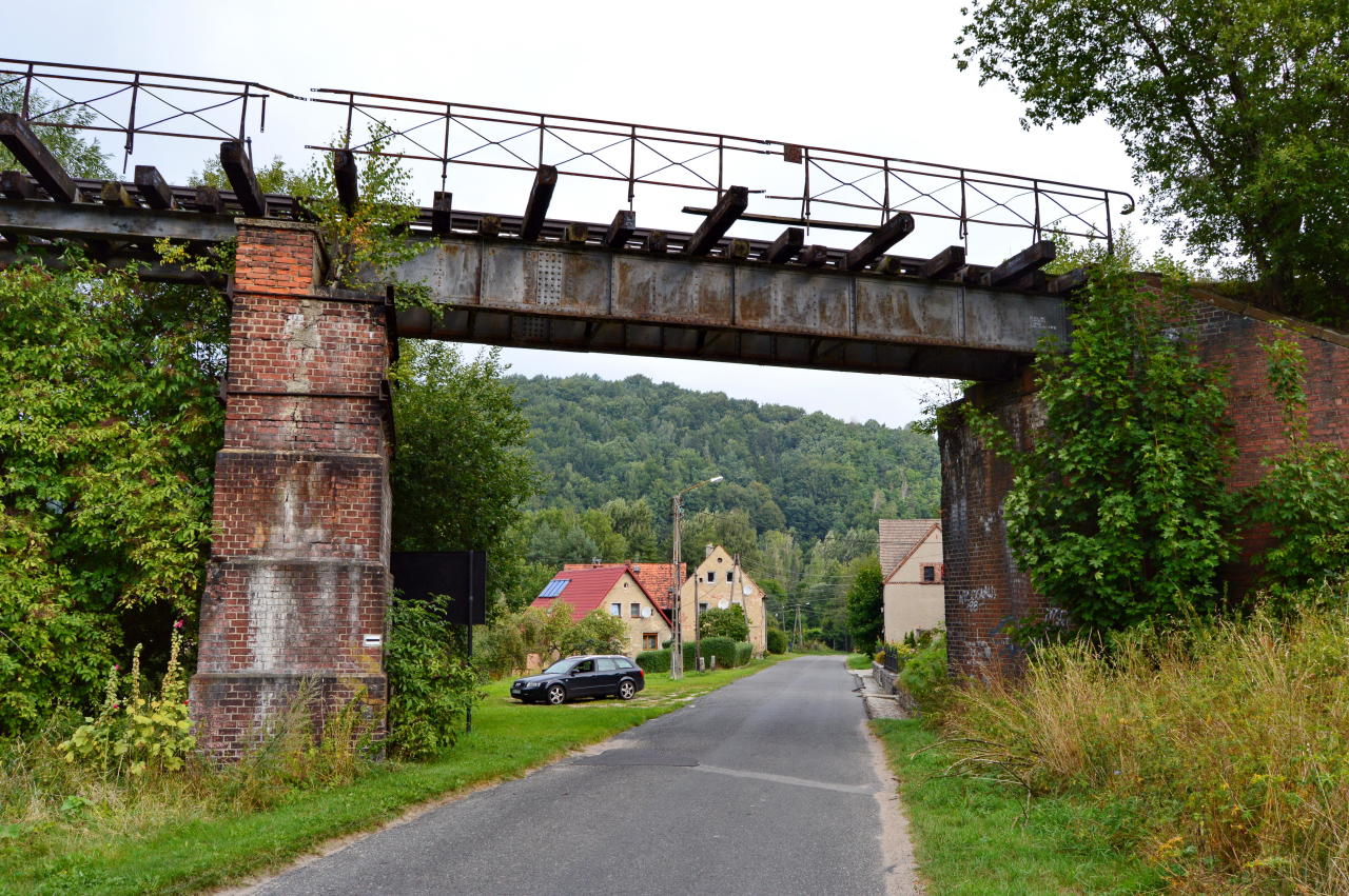 Wiadukt w Zagórzu, w ciągu drogi do Niedźwiedzicy. Obiekt nie dotrwał do naszych czasów, zastąpiony został inkszą konstrukcją. Widok w kierunku stacji Zagórze Śląskie/Świdnicy. Ze zbiorów Adama Pacześniaka.