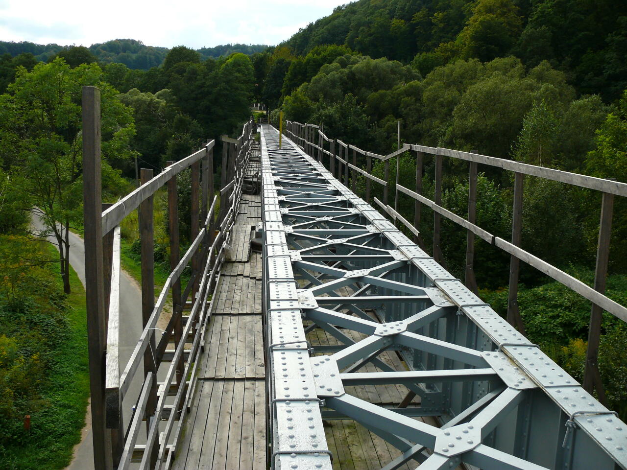 Trójprzęsłowy most w północnej części Jedliny-Zdrój, kolejno nad: ul. Długą, rzeką Bystrzycą, ul. Świdnicką. Widok w kierunku południowo-zachodnim: stacja Jedlina-Zdrój.