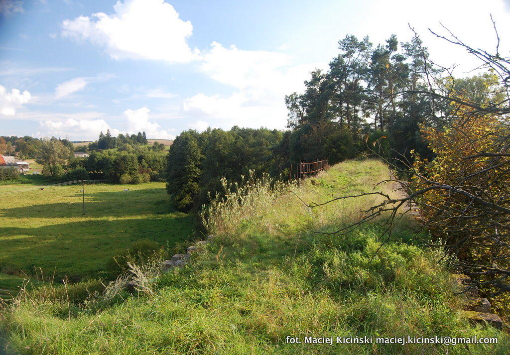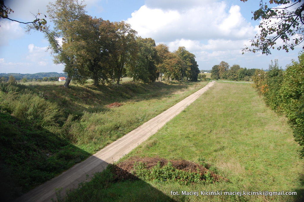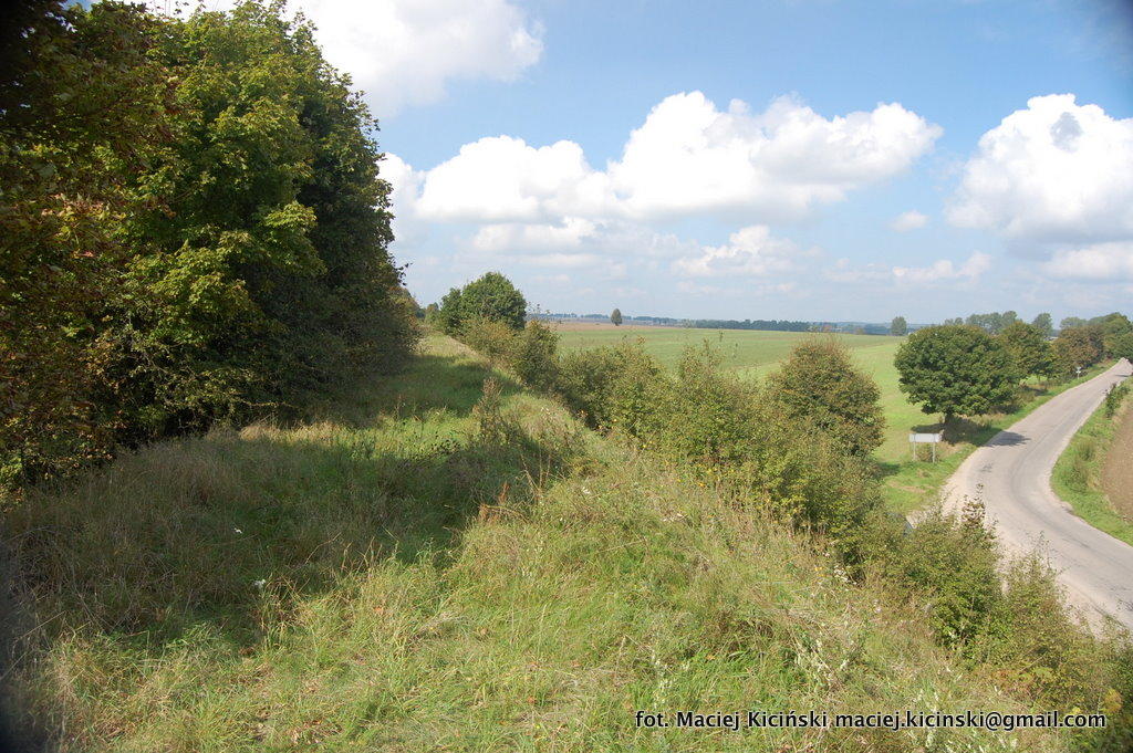 Potężny nasyp między Uzdowem a Brzeźnem. Po prawej stronie widoczna droga z Uzdowa do Ruszkowa.