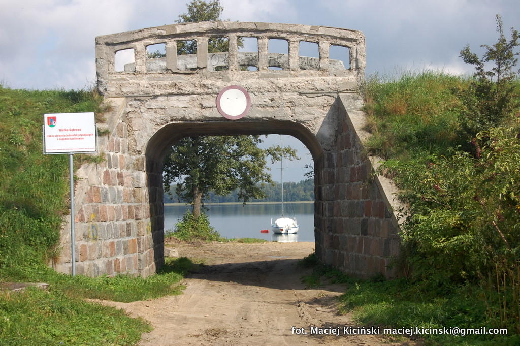 Widok na jez. Dąbrowa Wlk. spod wiaduktu kolejowego w Dąbrównie.