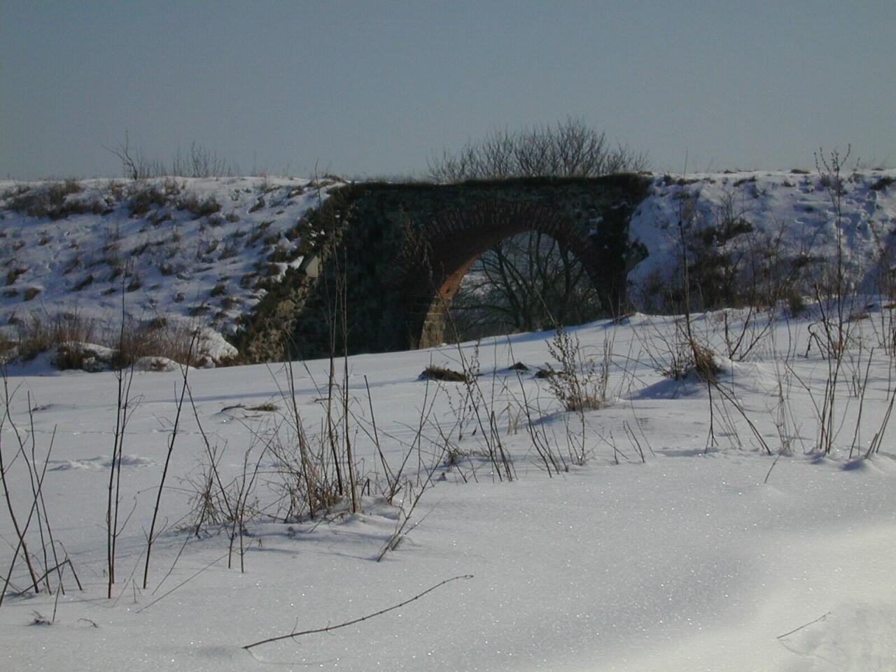 Wiadukt w Glaznotach, z fragmentami nasypu.