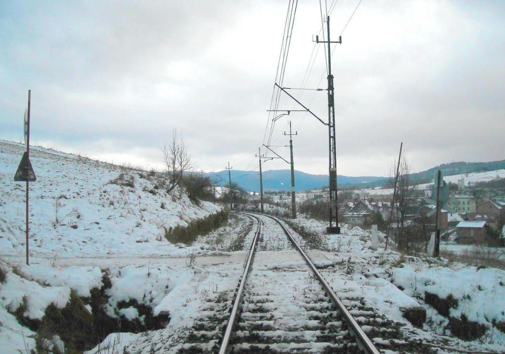 Łuk w km 9.8. Widok w kierunku Powroźnika łuku o R=208 m.
