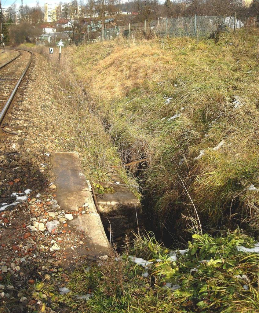 Odwadnia wschodnie zbocze nad torowiskiem. Widok od strony Powroźnika.