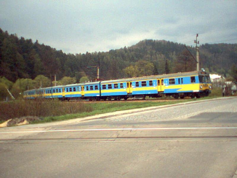 EN 57-719 rb w obsłudze pociągu REGIO nr 33158 Jaworzyna, relacji Krynica- Zdrój - Kraków Gł., w okolicy dawnego po Krynica Wieś.